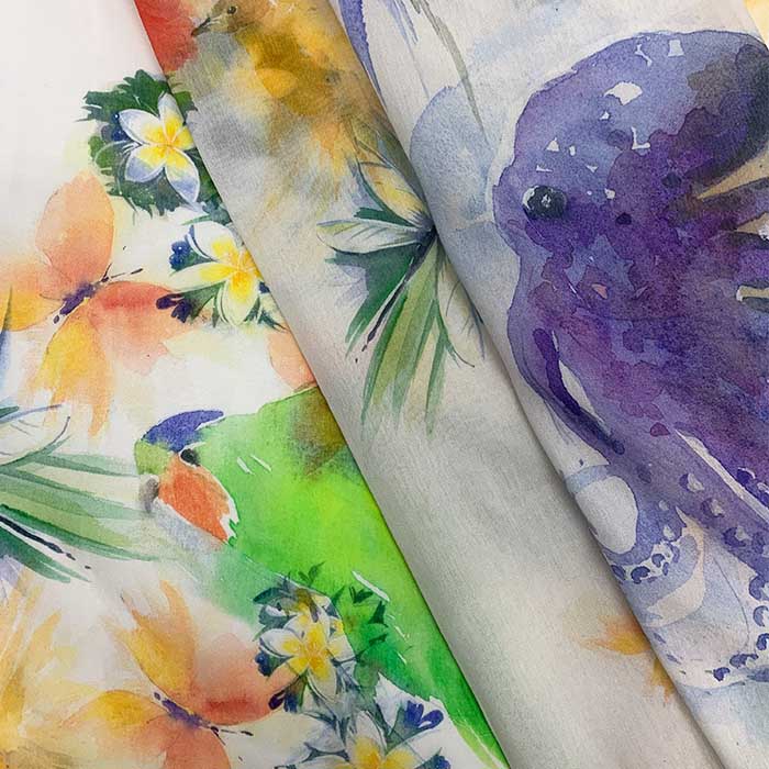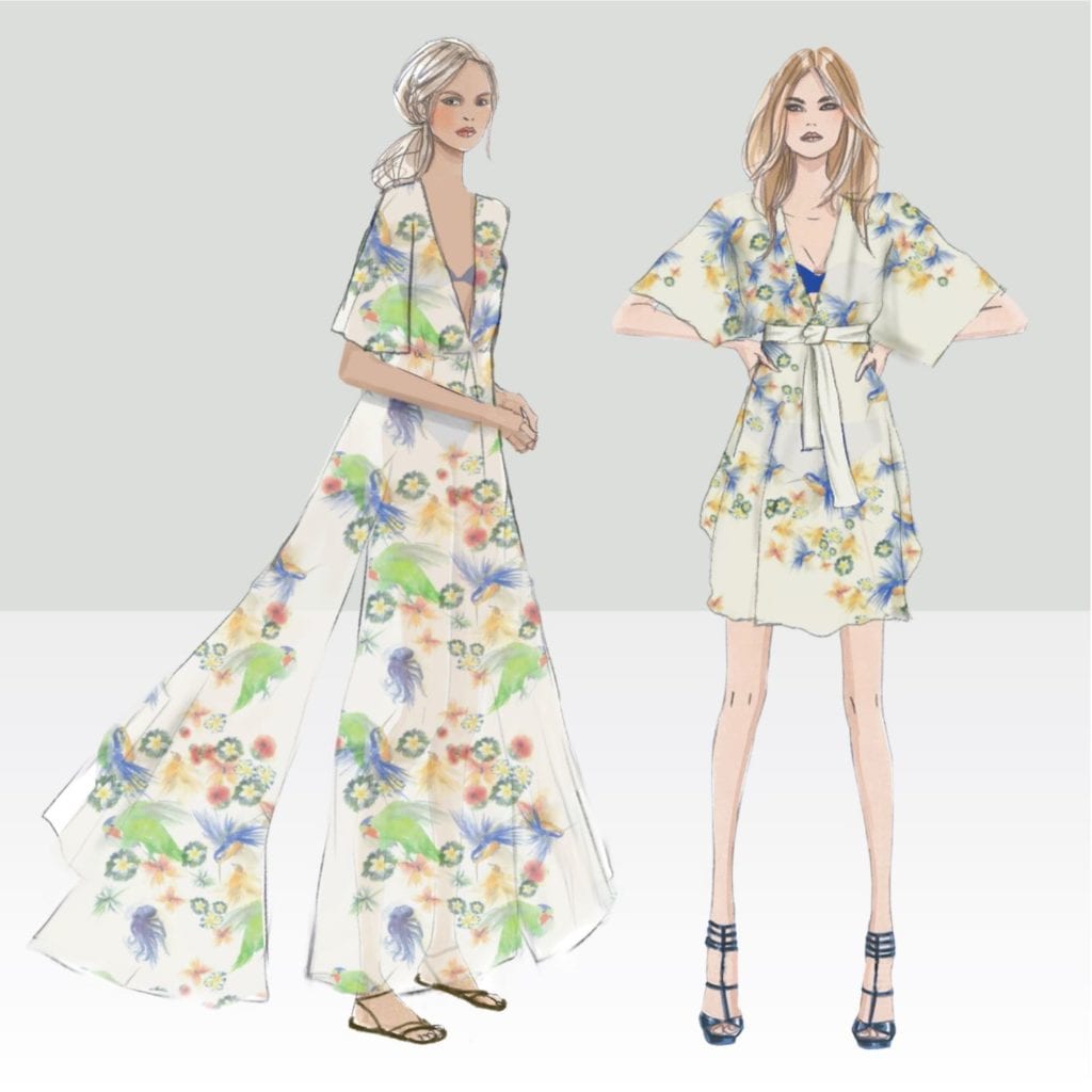 The exclusive tropical hideaway of Laucala Island Resort is located on a remote private island in Fiji, where lush rainforests meet pristine white sand beaches. Here, 25 Fijian-styled villas are beautifully situated amid hillside coconut plantations boasting spectacular views. Laucala has established number of organic farms and gardens whose produce graces the tables of the restaurants as well as supplying the spa with exotic flowers and spices. To complement the tropical beauty of the landscape, Fashionizer took inspiration from hand painted watercolor works depicting the local flora and fauna and transformed these into unique textiles.